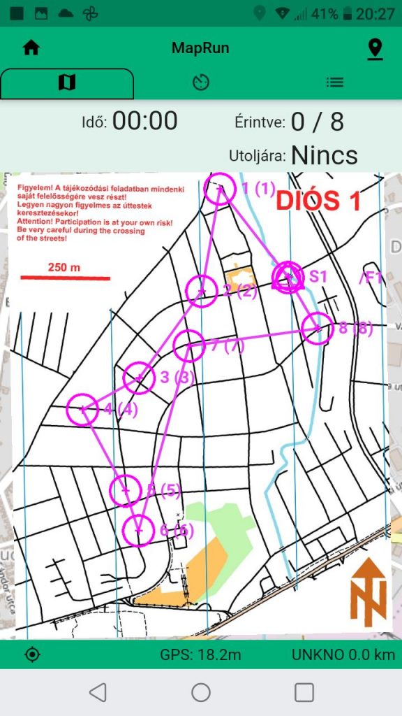 válassz pályát, teljesítsd. Ehhez a rajtból indulva a kijelölt pontokat kell megtalálni, érintésüket az eszköz regisztrálja, egészen a célig érve.