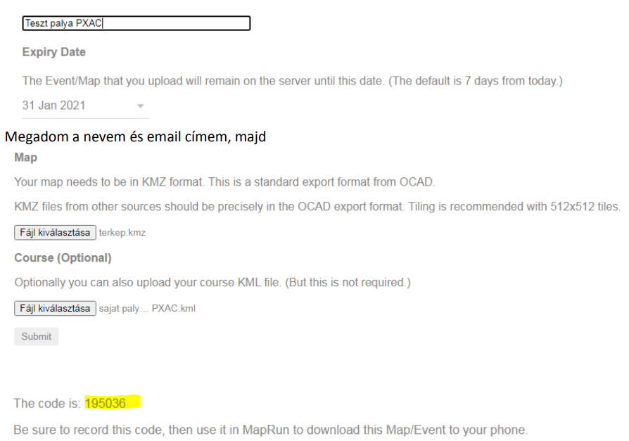 A kmz/kml páros a MapRun szerverre kerül fel, de csak egy adott időszak alatt érhető el, és kóddal védett.